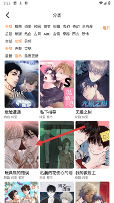 2、在分类页面选择【感兴趣的漫画】,进入漫画详情页。