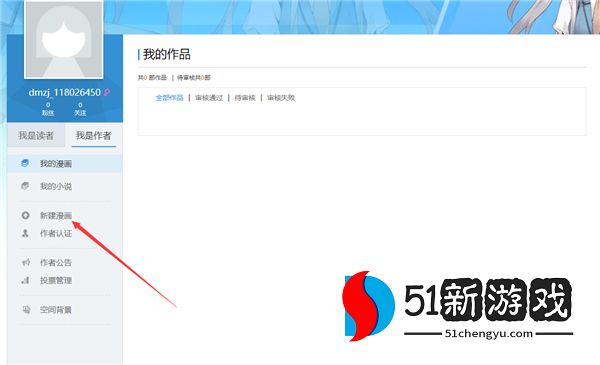 (1)通过网站右上方导航栏的“上传漫画”按钮或者个人空间->我是作者中的“新建漫画”进入漫画创建页面。