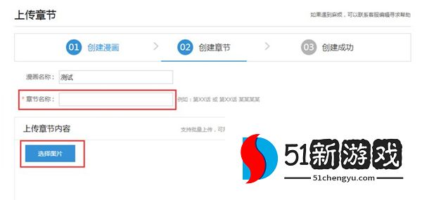 (1)、在创建章节页面,填写章节标题,并点击选择图片按钮上传图片,最后点击确定按钮即发布成功。