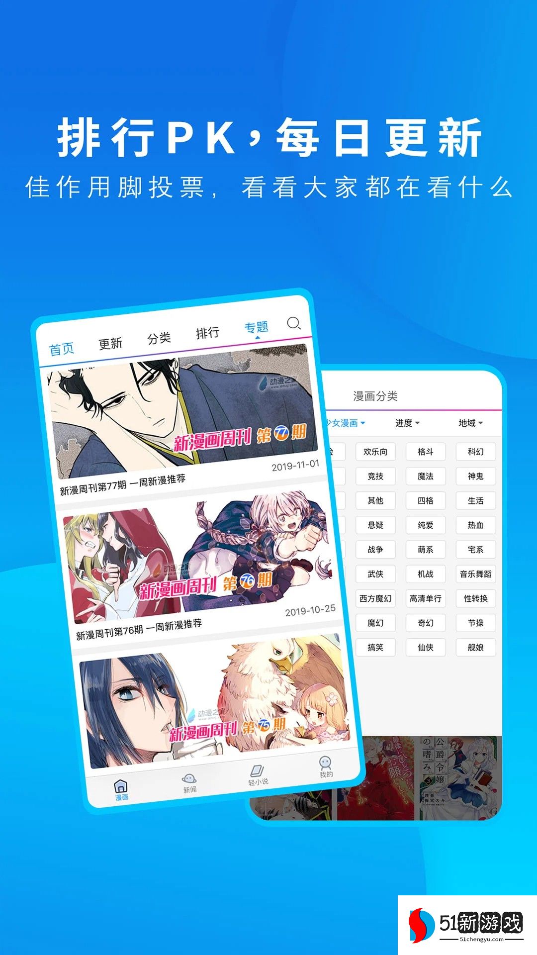 动漫之家是一个可以为您提供各种丰富动画资源的软件。动漫之家app拥有超多高质量的漫画资源,涵盖了各种类型和风格的漫画作品,让用户随时随地享受令人兴奋的漫画阅读体验;还有一个特殊的讨论板,你可以与其他用户分享,也可以放映漫画,你可以选择你喜欢的类型,订阅你感兴趣的漫画,这样你就可以在更新时及时得到通知,还支持在线观看和离线缓存漫画,方便用户在不同环境中阅读;喜欢的伙伴们欢迎下载!
