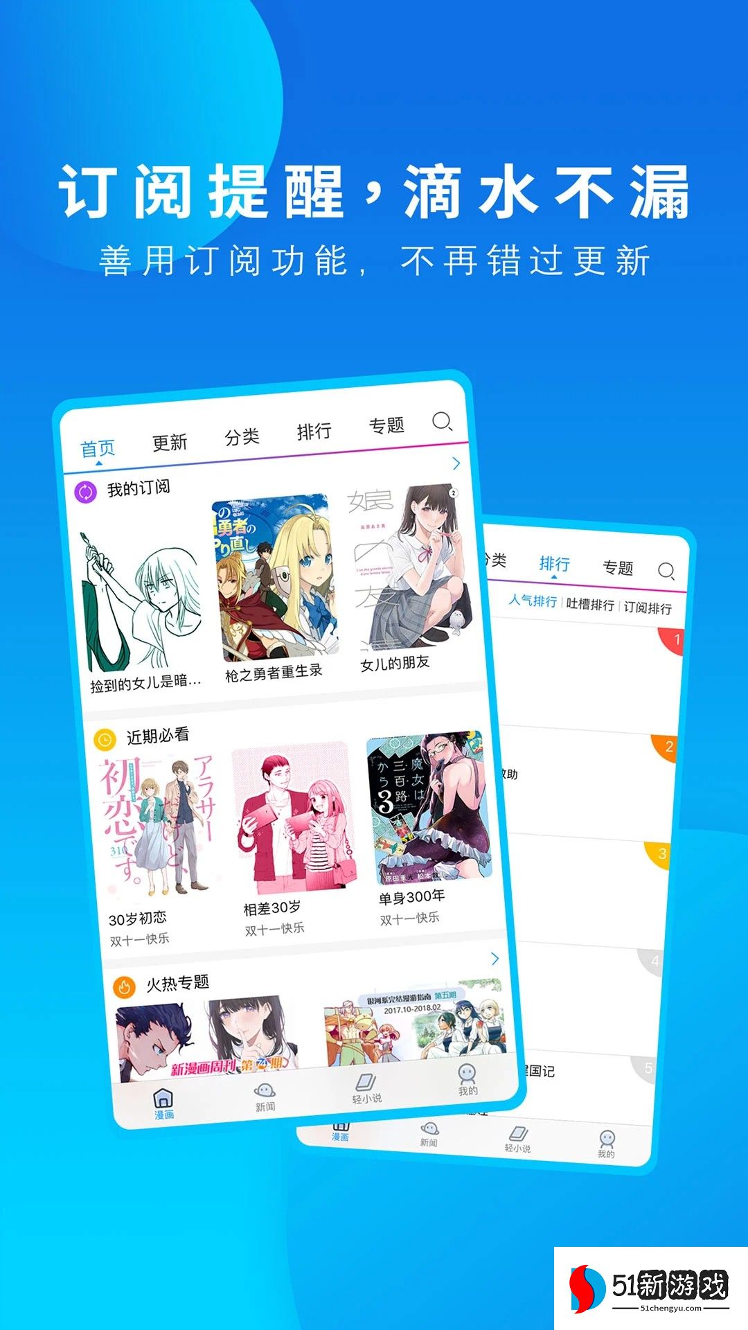 4、人气推送:主页将根据漫画的人气排名进行每日推荐,让用户在打开软件后立即看到最受欢迎的漫画。