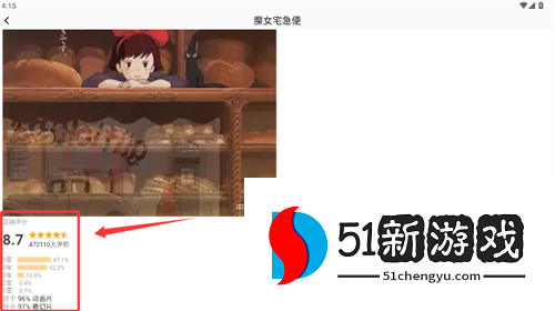 3、点击感兴趣的作品进入详情页,查看评分等具体信息。