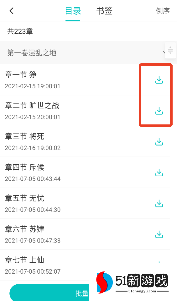 2、找到要缓存的章节,然后单击右侧的下载按钮。