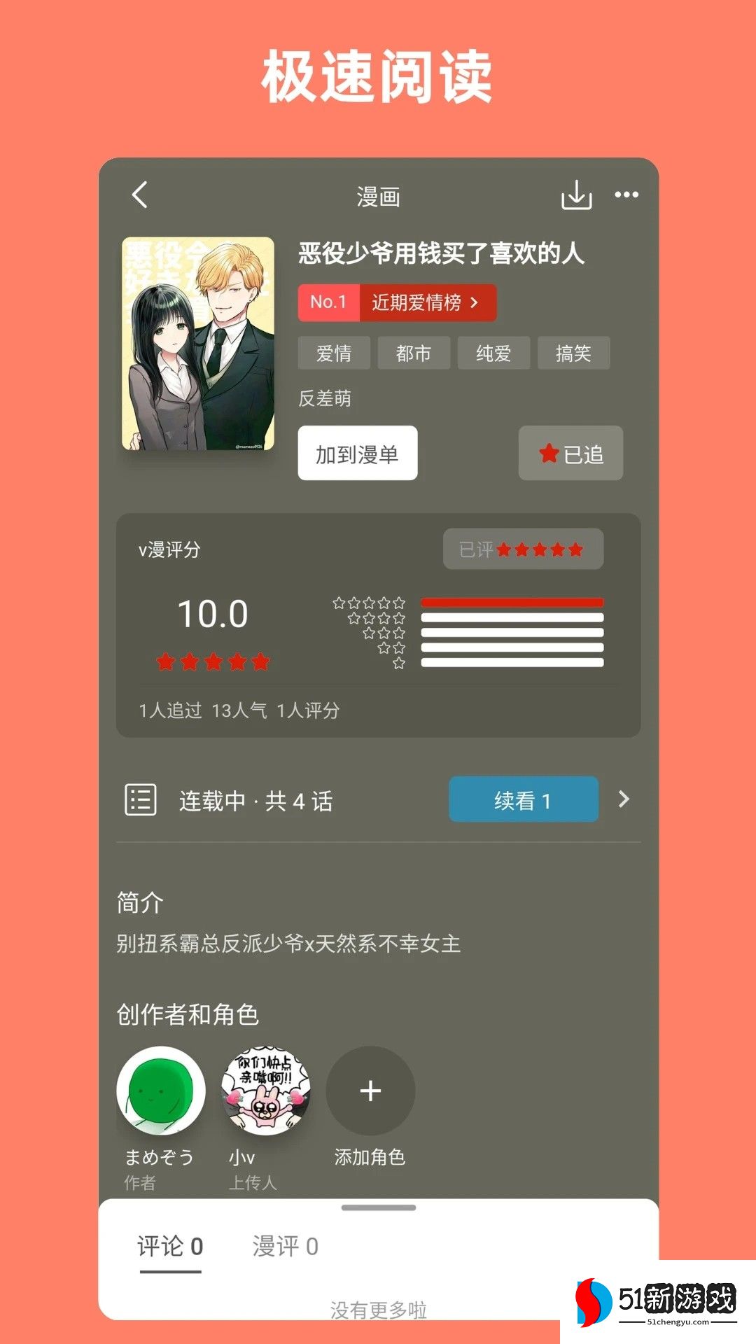 4、无广告中断:软件界面清爽无广告,让用户专注于阅读漫画。