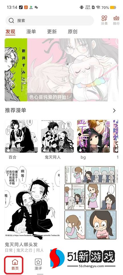 1、主页,提供漫画搜索,遵循原始和最新类别过滤。