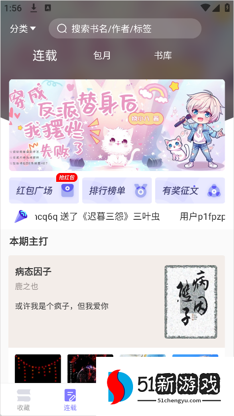 4、进入“序列化”模块,您可以通过搜索框搜索目标小说,以及浏览推荐和排名内容。