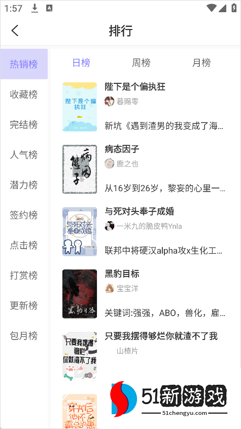 5、排行榜提供了多个维度的排名,包括热销榜、每日榜、每周榜和每月榜,帮助您轻松发现热门杰作。
