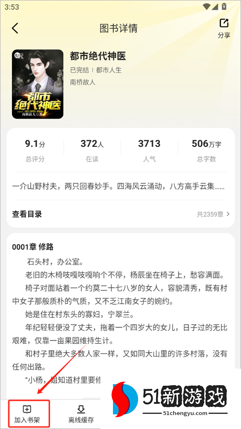 1、添加书架:在小说详情页面,点击“添加书架”按钮,将小说添加到书架上。