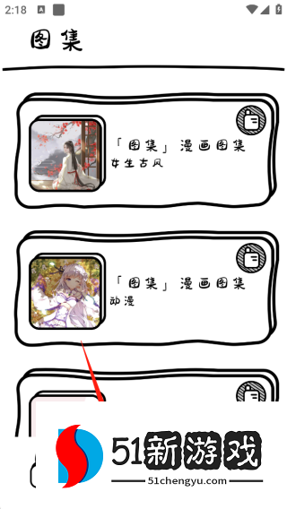 2、在“图集”栏目中,有着不同分类的漫画图集,根据喜好挑选图集进入查找壁纸。