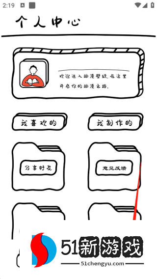 4、“个人中心”中,则可以看到你喜欢收藏的壁纸,以及你制作的所有壁纸。