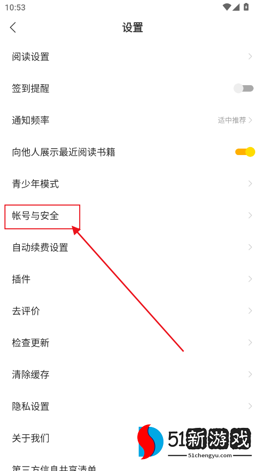 2、转到设置页面,单击“帐户和安全”选项。