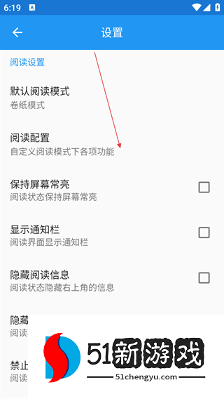 3、在设置页面,点击【阅读配置】可自定义阅读模式下的各项功能。