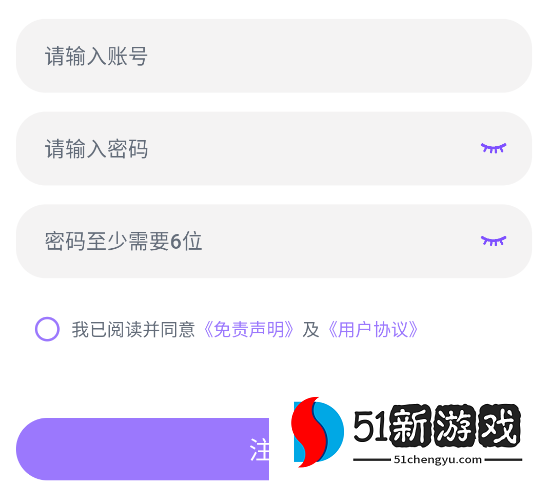 4、输入你要注册的账号和密码,然后点击同意协议,就可以成功注册。你要注意的是用户名必须6位数,且是数字。