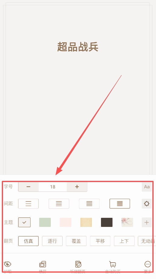 2、接下来,让我们来看看阅读设置的相关内容。当你打开像《超品战兵》这样的书时,你可以独立调整字体大小和单词间距。