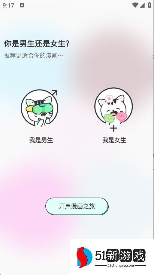 1、首先在本站下载青漫漫画app,选择性别以便为你精准推荐。