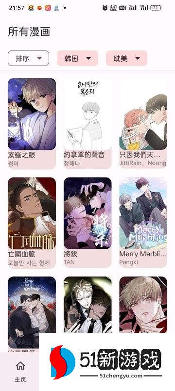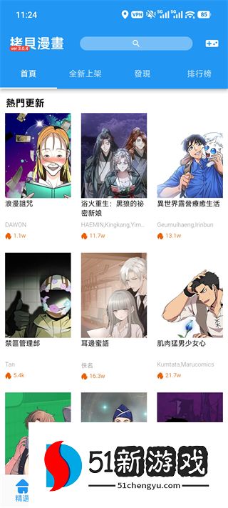 1、打开写轮眼漫画应用程序并进入主页后,您将看到大量流行的漫画内容,涵盖爱情、幻想、冒险等主题。您还可以通过搜索栏快速找到要阅读的漫画。