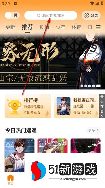3、输入要阅读的漫画名称。