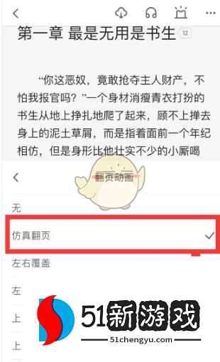 5、然后翻页的时候就可以出现仿真翻页了。