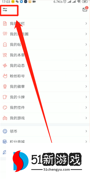 2、在我的页面中点击左上角的【设置】图标,进入设置页面。