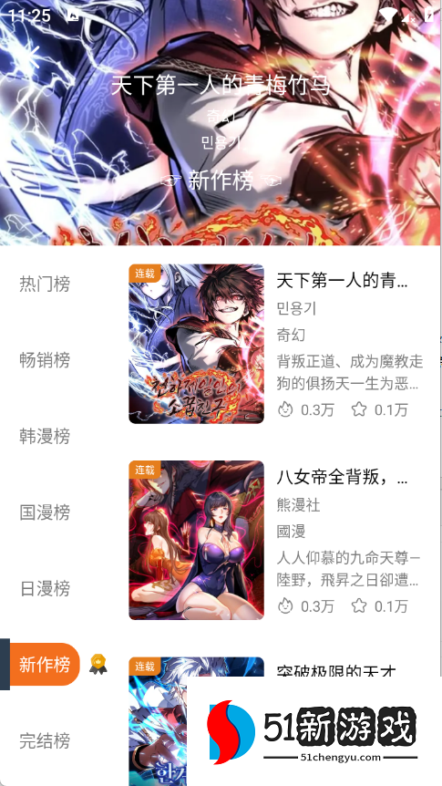 5、排行榜栏目主要是将漫画根据热度进行排序。