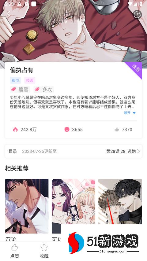 4、个性化推荐:根据用户的阅读偏好,应用程序将智能推荐相关漫画作品,帮助用户发现更多高质量的内容。
