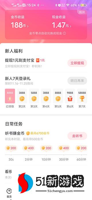 4、独特的听歌赚钱,大家可以在这里,完成任务,获得金币,将金币兑换成现金。