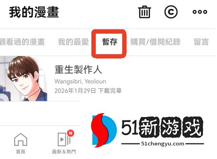 4、下载完毕后,可以在【我的漫画】-【暂存】中查看。