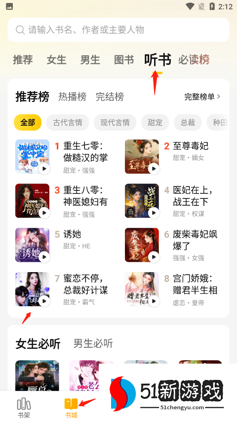 4、除了上面这个听书方法,你还可以在书城直接选择听书选项,在这里点进你想听的小说。