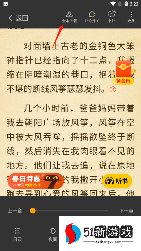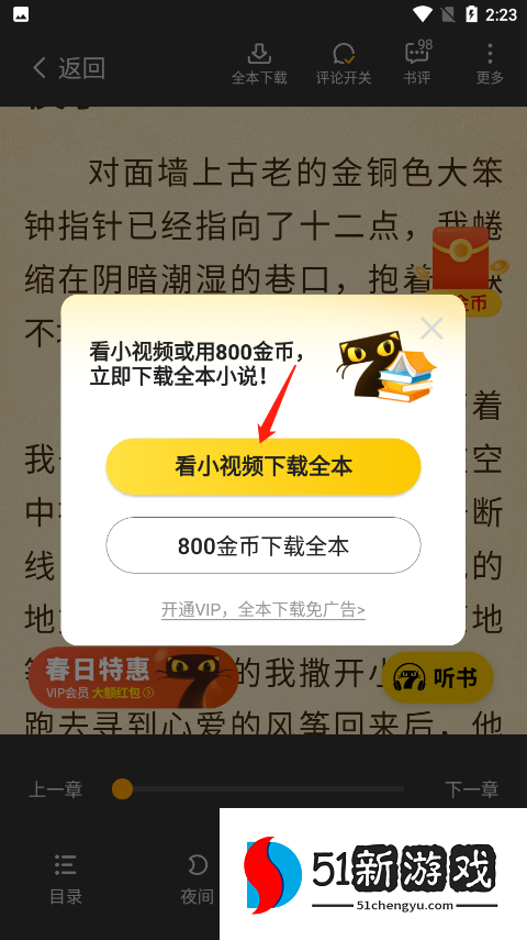 4、再然后点击看小视频下载全本,或者领取金币后点击金币下载全本也可。