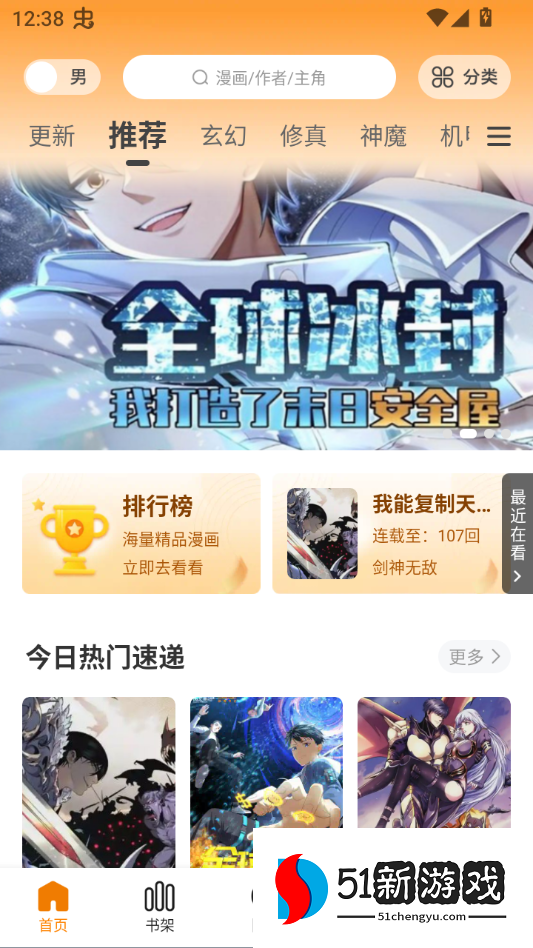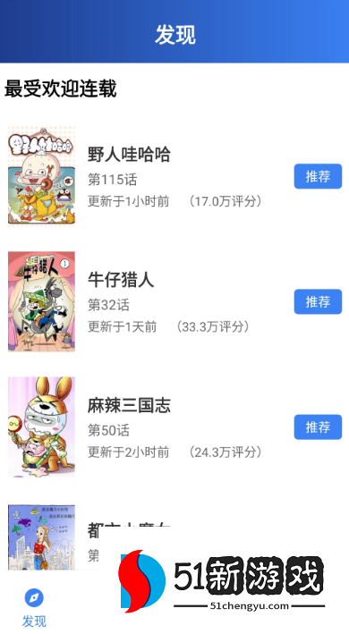 4、进入主页可以查看推荐的漫画。