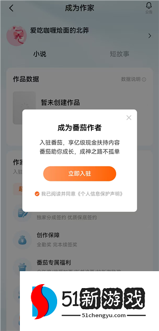 2、点击【成为番茄作家】。