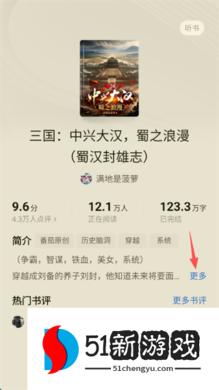4、点击屏幕右侧的“更多”可以看见该书的完整简介。