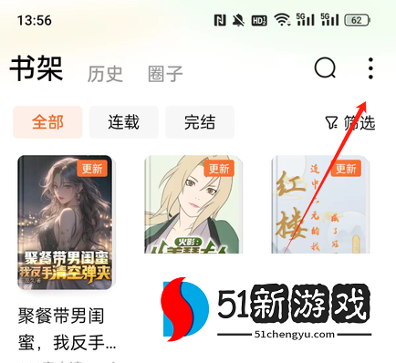 2、点击右上角的三个点图标,在弹出的选项里选择导入图书。
