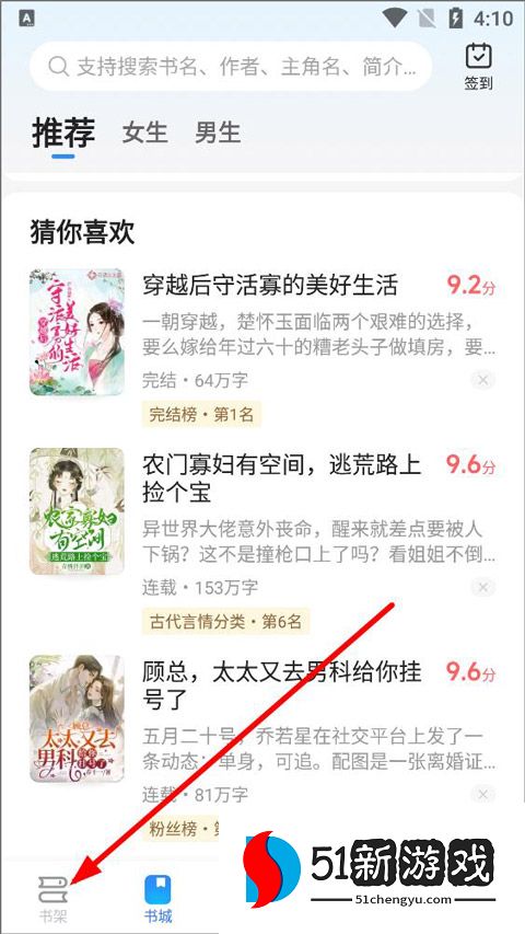 4、搜索小说:在书架页面上查看最近添加的书籍和推荐阅读的书籍,或使用搜索功能查找感兴趣的小说。
