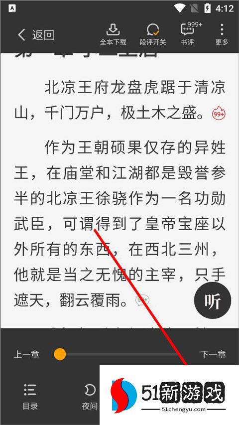 3、听书功能:支持听书模式,解放眼睛,让您随时随地享受小说的乐趣。
