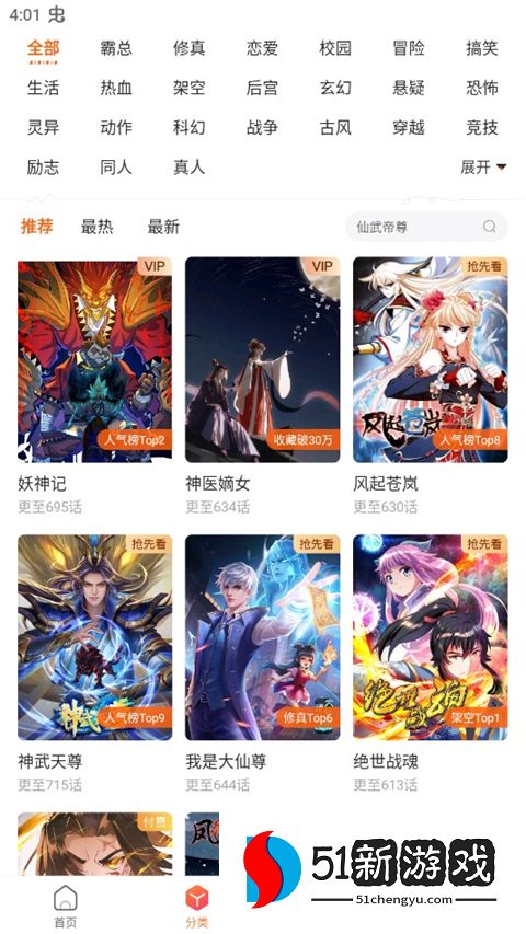 1、分类搜索:用户可以根据漫画的类型、作者、地区和其他标准进行搜索,快速找到他们最喜欢的漫画作品。