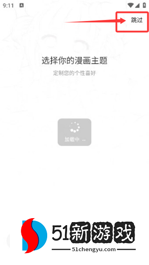 1、启动应用程序后,可以直接点击跳过,进入主题选择页面的主界面。