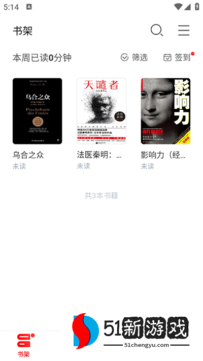 2、进入书架,用户可以将自己喜欢的书籍添加到书架上。