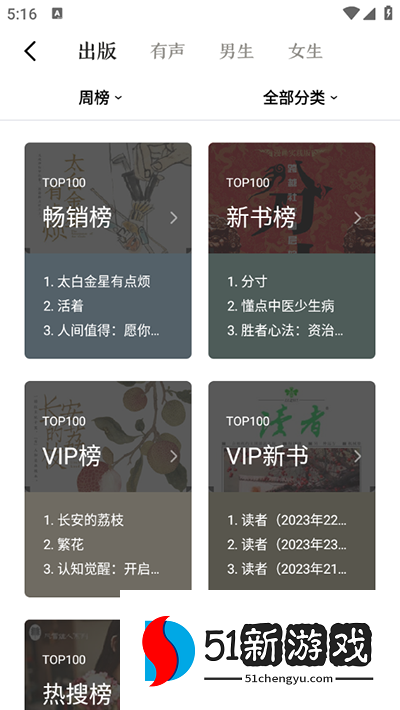 4、进入排行榜,用户可以看到各种热门排名,并根据自己的受欢迎程度自由选择阅读。