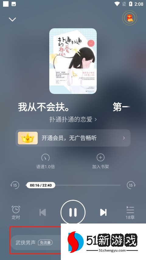 3、接下来你便可以进入听书界面,这里有边听边读的功能,还可以切换阅读声音。