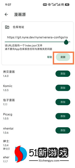 1、第一次打开Venera漫画应用程序时,需要添加一个漫画源并点击它。