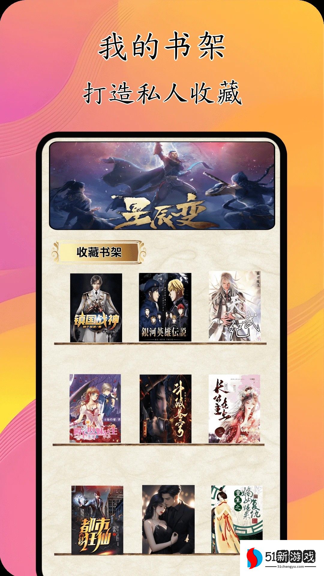 4、书架管理:支持书架管理,方便用户管理自己的阅读进度和收藏的小说。