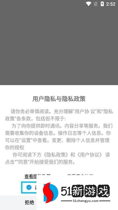 1、在本站下载夜聊app后打开软件,阅读弹出的用户隐私与隐私政策,勾选【选中表示我已阅读并同意协议】,点击【同意】;