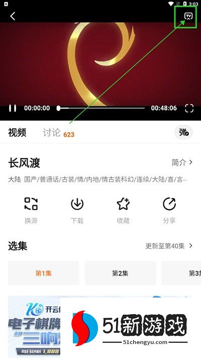 2、点击右上角的投屏功能;