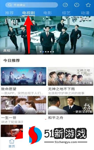 2、点击顶部“电视剧”分类,系统将展示各种热门电视剧资源,方便快速查找观看。