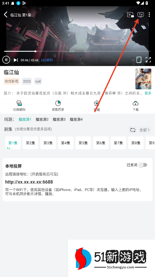 在播放界面,点击右上角的“TV投屏”按钮。