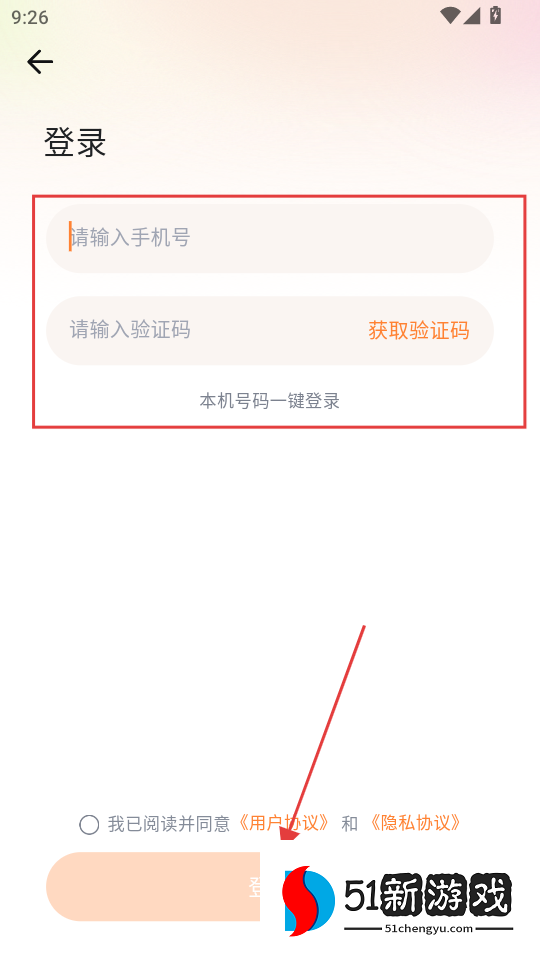 3、输入手机号,获取验证码,点击登录。