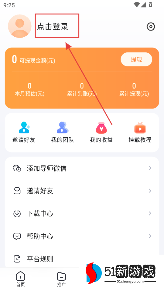 2、点击上方点击登录。