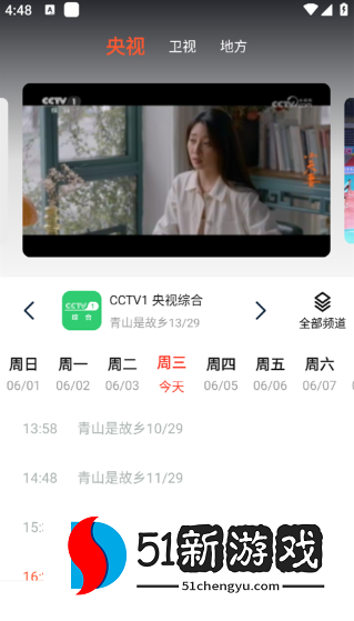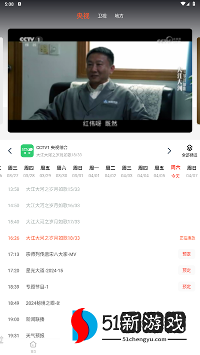 2、直播版块内可以看到当前频道的节目播放单。