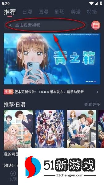 2、然后输入动漫名称,点击后面的“搜索”就可以了,如图所示。